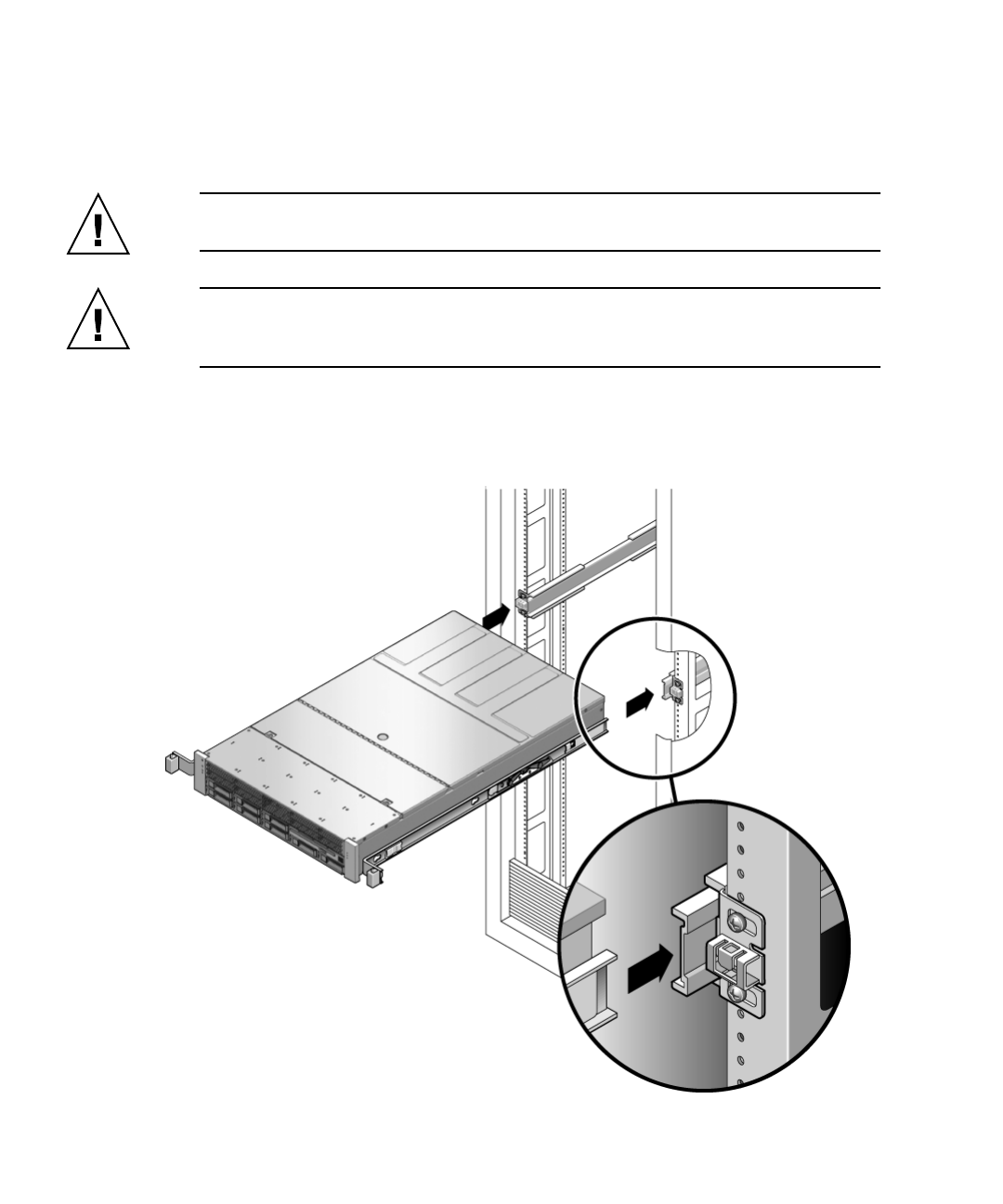 Caution – The weight of the servers on extended slide rails can be enough to