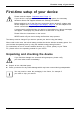 • The back of the device hea ts up d uring normal op eration. Prolonged con tact
