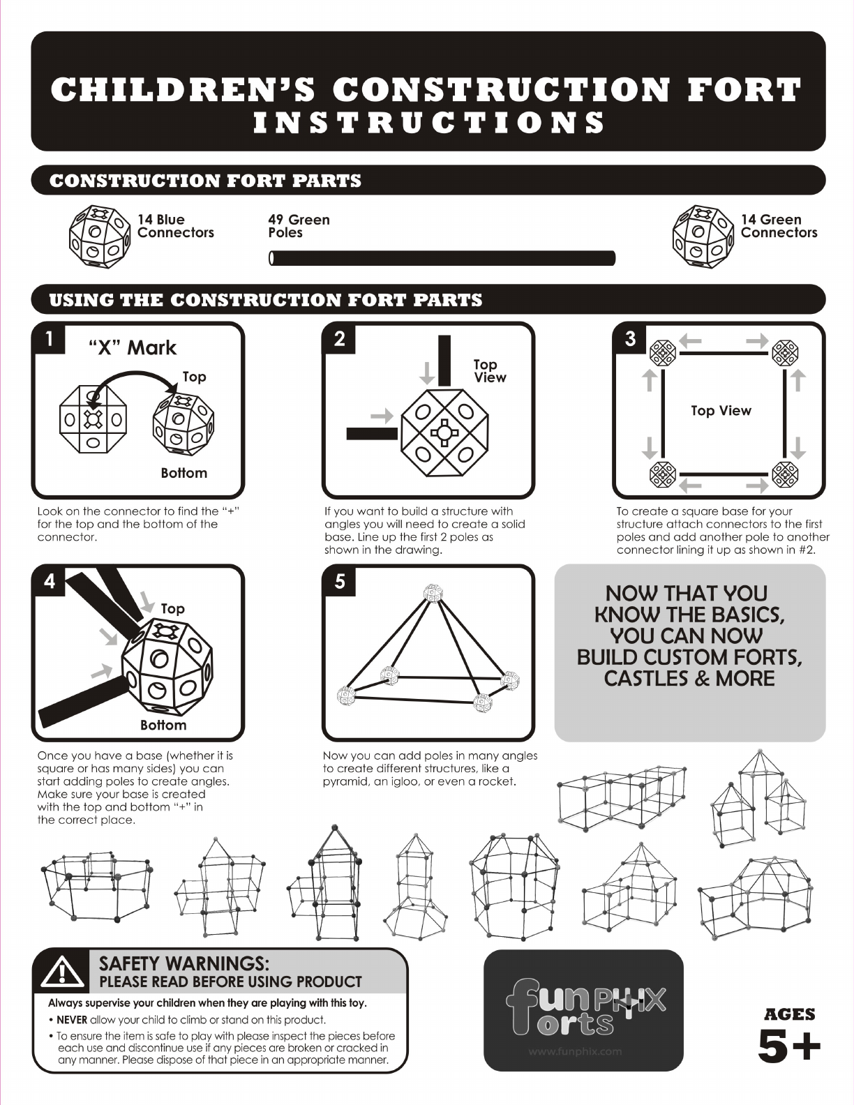 Blue and Green Balls Funphix Fort Building Kit, Glow in the Dark Sticks, Fun Construction Toy for Age 5 Plus (77-Piece)