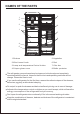 NAMES OF THE PARTS 6 1 2 3 6 1 7 8 4 5 1.Shelves 5.Vegetalbe 2.Wind tunnel knob 6.Rod 3.Lamp and temperature Control button 7.Cola bar 4.Crisper glass cover 8.Bottle protector The refrigerator you purchased may be improved, which maybe not completely consistent with the manual, However the functions and operating methods will not change.