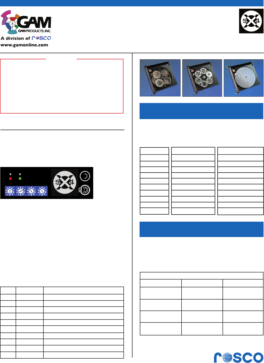 SX4® 4 & 6 GOBO TRAY • DISC TRAY (Modes 6 - 9)