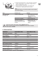 1 O 3. Unwind the cutting filament 1, clean the filament cassette O and the cutting filament 1 and wind the cutting filament 1 onto the cassette O once more. GB 1 4. Insert the filament cassette again as described under 6. Maintenance “Replacing the filament cassette”. Note : The cassette cover N can also be pressed by hand to lengthen the filament manually. Fault Possible cause Remedy The Turbotrimmer no longer cuts Filament cassette empty. v Replace the filament cassette (see 6.