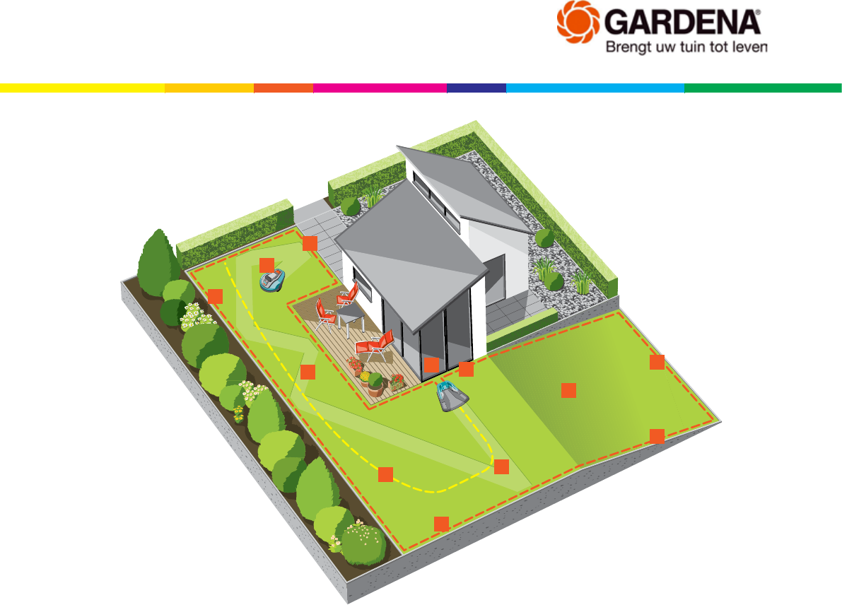 de hellingsgraad groter is, kan de robotmaaier, bij vochtig gras, buiten de maaizone glijden. Indien er een vaste beperking