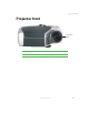 Projector bottom Projector bottom Lamp access panel Adjustor-foot Lens cap Ceiling mount connector Item Description Lamp access panel Remove the screw to access the lamp bay. For more information, see “Changing the lamp module” on page 35. Adjustor-foot Press the button on the right side of the projector to release the adjustor-foot. For more information, see “Setting up the projector” on page 18. Lens cap Protects the projector lens.