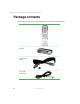 Chapter 1: Checking Out Your Gateway DVD Player Package contents Along with your DVD player, the packaging box contains the following items: Remote control Two AAA batteries RCA audio cable (red and white plugs) RCA composite video cable (yellow plug) 4 www.gateway.