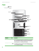 www.gateway.com Component Front Icon Description Diskette drive (optional) Insert a standard 3.5-inch diskette into the diskette drive. Memory card reader (optional) Insert a memory card from a digital camera, MP3 player, PDA, cellular telephone, or other devices into the memory card reader. Power button Press this button to turn the power on or off. You can also configure the power button to operate in Standby/Resume mode or Hibernate mode.