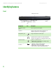 www.gateway.com Identifying features Bottom Hard drive bay Memory bay Customer care/ system label Battery latch Battery lock Battery Component Description Hard drive bay The hard drive is located in this bay. For more information, see “Replacing the hard drive kit” on page 39. Customer care/system label Includes the product model number and Customer Care contact information. For more information, see “Gateway model and serial number” on page 2 and “Gateway contact information” on page 2.