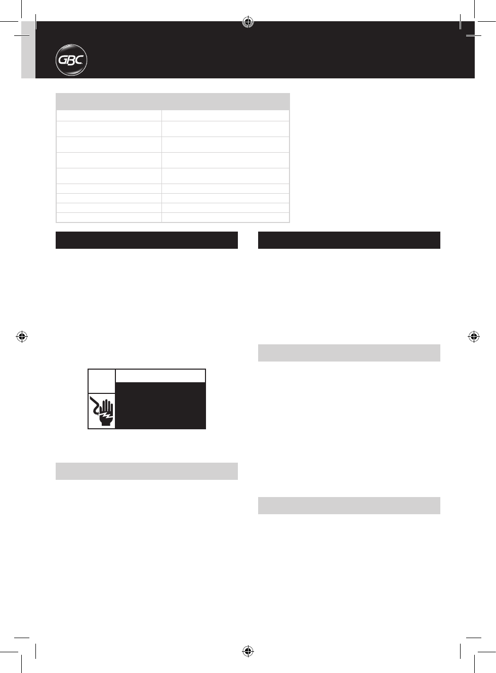 • Do not block the vent slots, this will cause the laminator to overheat.