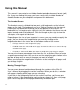 Using this Manual This manual is presented as an Adobe Acrobat portable document format (.pdf) file. If you are reading this page, you have successfully installed Acrobat or Acrobat Reader on your computer and opened this document. The Acrobat Screen The Acrobat screen is divided into two parts, with bookmarks on the left and pages on the right. The bookmarks act as a Table of Contents for the manual. Clicking on any bookmark will bring you to that portion of the manual.