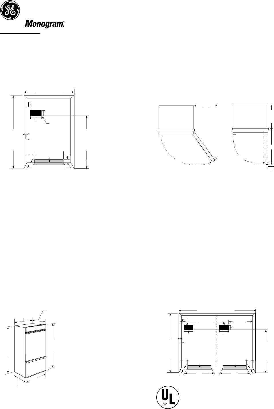 Allow 25" minimum clearances for a full 130° door swing. Allow 15"