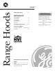 Range Hoods ge.com Safety Information . . . . . . . . 2, 3 Operating/Care and Cleaning Instructions Charcoal Filter . . . . . . . . . . . . . . .5 Grease Filter . . . . . . . . . . . . . . . .4 Hood Light . . . . . . . . . . . . . . . . .5 Hood Surfaces . . . . . . . . . . . . . . .5 Controls . . . . . . . . . . . . . . . . . . . .4 Installation Instructions . . .