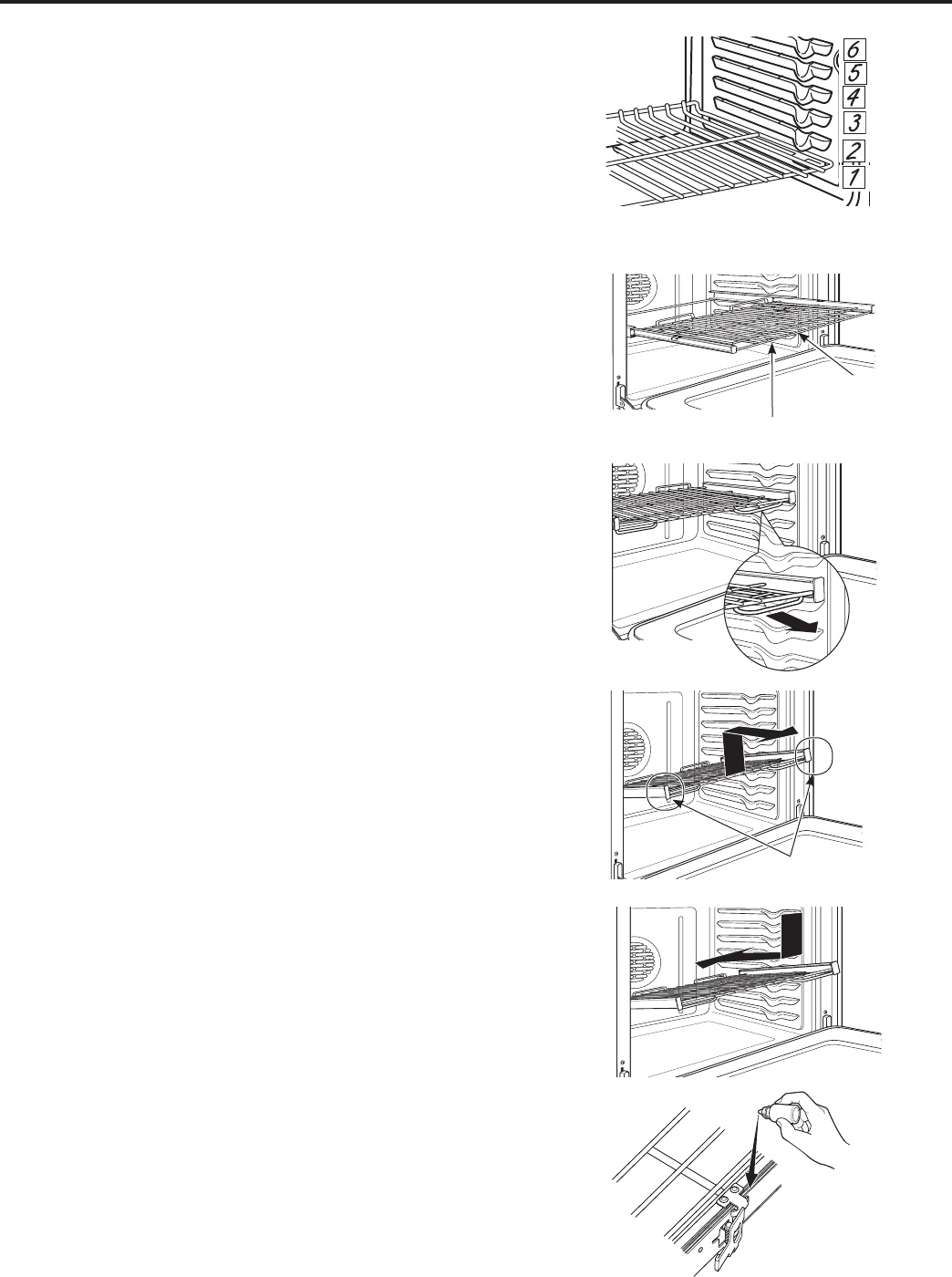 El horno cuenta con seis posiciones de estantes. En la Guía