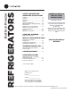 REFRIGERATORS Bottom Freezer SAFETY INFORMATION .....3 OPERATING INSTRUCTIONS Features . . . . . . . . . . . . . . . . . . . . . . . . . . 6 Controls . . . . . . . . . . . . . . . . . . . . . . . . . . 9 Dispenser* . . . . . . . . . . . . . . . . . . . . . . . 13 Autofill* . . . . . . . . . . . . . . . . . . . . . . . . . 14 Single Serve Brewer* . . . . . . . . . . . . . . 15 About Appliance Communication . . . 16 Water Filter . . . . . . . . . . . . . . . . . . . . . . 17 Refrigerator Storage Options.