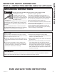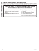 SAFETY INFORMATION IMPORTANT SAFETY INFORMATION READ ALL INSTRUCTIONS BEFORE USING THE APPLIANCE WARNING Continued OPERATING CLEANING ■ D o not operate the oven without the turntable in place. The turntable must be unrestricted so it can turn. ■ Keep the oven free from grease buildup. ■ M ake sure all cookware used in your microwave oven is suitable for microwaving.