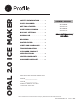 OPAL 2.0 ICE MAKER SAFETY INFORMATION . . . . . . . . .3 PARTS INCLUDED . . . . . . . . . . . . . . . .5 GETTING STARTED . . . . . . . . . . . . . .6 CARE AND CLEANING . . . . . . . . . . .7 DISPLAY SETTINGS . . . . . . . . . . . . . 10 MAKING ICE . . . . . . . . . . . . . . . . . . . . . . 10 OWNER’S MANUAL XPIO13BCBT XPIO13SCSS XPIO23BCBT XPIO23SCSS ENGLISH/FRANÇAIS/ ESPAÑOL DRAINING . . . . . . . . . . . . . . . . . . . . . . . . 10 WATER FILTER . . . . . . . . . . . . . . . . . .