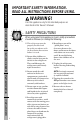 Safety Information IMPORTANT SAFETY INFORMATION. READ ALL INSTRUCTIONS BEFORE USING. WARNING! Installation Instructions Operating Instructions HOW TO CONNECT ELECTRICITY Do not, under any circumstances, cut or remove the third (ground) prong from the power cord. For personal safety, this appliance must be properly grounded.