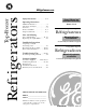 Top-Freezer Refrigerators GEAppliances.com Safety Instructions . . . . . . . . . . .2–4 Operating Instructions Additional Features . . . . . . . . . . . . .9 Automatic Icemaker . . . . . . . . . . .10 Controls . . . . . . . . . . . . . . . . . . . . . .5 Shelves and Bins . . . . . . . . . . . . .6, 7 Crispers and Pans . . . . . . . . . . . .8, 9 Care and Cleaning Care and Cleaning . . . . . . . . . .11, 12 Replacing the Light Bulbs . . . . . . .