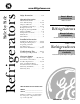Side by Side Refrigerators www.GEAppliances.com Safety Instructions . . . . . . . . . . .2–4 Operating Instructions Automatic Icemaker . . . . . . . . . . .11 Care and Cleaning . . . . . . . . . .13, 14 Crispers and Pans . . . . . . . . . . . . .10 Ice and Water Dispenser . . . . .12, 13 Refrigerator Doors . . . . . . . . . . . . .9 Replacing the Light Bulbs . . . . . . .15 Shelves and Bins . . . . . . . . . . . . .7, 8 Temperature Controls . . . . . . . . . . .5 TurboCool™ . . . . . . . . . . . . . . .