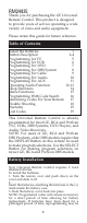 Trouble Shooting PROBLEM SOLUTION A) Replace the batterRed light not blinking ies with 2 new AAA when you press any alkaline batteries. B) Check if batteries key. are properly installed. The remote does not operate your video devices. A) Try all the codes listed for your brand. B) Try the Code Search method.