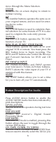 Descripción de Botones par la Operación de Audio Presione el botón AUDIO para habilitar las funciones de la Modalidad AUDIO indicadas por las descripciones escritas en rosa LEVEL+ / LEVEL- (NIVEL+ / NIVEL-) Establece el nivel de las bocinas durante la modalidad de prueba de tono. DSP ON-OFF Activa la Modalidad de Procesamiento de Sonido Digital del receptor. DSP MODE (MODALIDAD DSP) Cuando se encuentra activada la modalidad DSP, si presiona este botón, le permite al usuario cambiar de modalidades DSP.