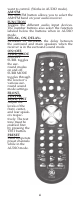 ProgramaciÛn para el Botón AUX Puede asignar una TV, VCR o sistema de sátelite segunda o caje de cable a la botón "AUX". 1. Manualmente encienda el aparato que desea controlar. Encuentre el código de tres dígitos para el aparato que desea programar en la lista de códigos. 2. Mantenga presionado el botón CODE SEARCH hasta que la LUZ INDICADORA se encienda, entonces suelte el botón CODE SEARCH. 3. Presione y suelte el botón AUX. (La LUZ INDI CADORA parpadeará y después permanecerá encendida.