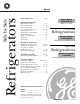 Side by Side Refrigerators ge.com Safety Instructions . . . . . . . . . . . . . . .2–4 Operating Instructions Automatic Icemaker . . . . . . . . . . . . . . .11 Care and Cleaning . . . . . . . . . . . . . .13, 14 Crispers and Pans . . . . . . . . . . . . . . . . .10 Ice and Water Dispenser . . . . . . . . .12, 13 Refrigerator Doors . . . . . . . . . . . . . . . . .9 Replacing the Light Bulbs . . . . . . . . . . .15 Shelves and Bins . . . . . . . . . . . . . . . . .7, 8 Temperature Controls . . . . . . .