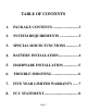 TABLE OF CONTENTS 1. PACKAGE CONTENTS --------------------- 3 2. SYSTEM REQUIREMENTS --------------- 3 3. SPECIAL MOUSE FUNCTIONS ---------- 3 4. BATTERY INSTALLATION---------------- 4 5. HARDWARE INSTALLATION ------------ 5 6. TROUBLE SHOOTING --------------------- 6 7. FIVE YEAR LIMITED WARRANTY ---- 7 8.