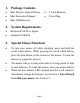 1. Package Contents • Mini Wireless Optical Mouse • 2 AAA Batteries • Mini Instruction Manual • Travel Bag • Mini USB Receiver 2. System Requirements • Windows® 98 SE or higher • Available USB Port 3. Special Mouse Functions • To turn your mouse off while traveling, press and hold the scroll wheel button. While pressing the scroll wheel button, press the link button on the bottom of the mouse. To turn the mouse on repeat this process.