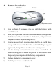 . Battery Installation FRONT BACK PRESS PULL HERE Battery Compartment Cover 1) Grip the front of the mouse (the end with the buttons) with your left hand. 2) With your right hand hold the back of the mouse (end opposite the buttons) with your thumb on the bottom, and your index finger and middle finger resting on top. 3) Grip the mouse firmly, pressing down slightly on the GE logo on top of the mouse with the index and middle finger of your right hand, then pull back to release the battery cover.
