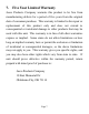 . Five Year Limited Warranty Jasco Products Company warrants this product to be free from manufacturing defects for a period of five years from the original date of consumer purchase. This warranty is limited to the repair or replacement of this product only and does not extend to consequential or incidental damage to other products that may be used with this unit. This warranty is in lieu of all other warranties express or implied.