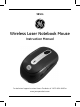 98504 Wireless Laser Notebook Mouse Instruction Manual For technical support contact Jasco Products at 1-800-654-8483 or www.jascoproducts.