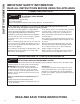 INFORMATION DE SÉCURITÉ INFORMATION DE SÉCURITÉ IMPORTANTES LISEZ TOUTES LES DIRECTIVES AVANT D'UTILISER L'APPAREIL BRANCHEMENTS ÉLECTRIQUES AVERTISSEMENT RISQUE DE CHOC ÉLECTRIQUE Branchez l’appareil dans une prise triple avec terre. Ne retirez pas la broche de terre. N’utilisez pas d’adaptateur. Le non-respect de ces instructions peut entraîner des risques d’incendies, des chocs électriques ou la mort.