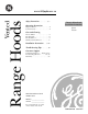 Vented Range Hoods www.GEAppliances.ca Safety Instructions . . . . . . . . . 2, 3 Operating Instructions Light Controls . . . . . . . . . . . . . . . .4 Vent Controls . . . . . . . . . . . . . . . .4 Owner’s Manual and Installation Instructions JV936 CV936 Care and Cleaning Grease Filters . . . . . . . . . . . . . . . .5 Hood Lights . . . . . . . . . . . . . . . . .6 Hood Surfaces . . . . . . . . . . . . . . . .5 Stainless Steel Surfaces . . . . . . . . .5 Installation Instructions . . .
