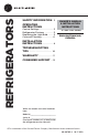 REFRIGERATORS SAFETY INFORMATION . 3 OPERATING INSTRUCTIONS Control Settings . . . . . . . . . . . . Refrigerator Features . . . . . . . Replacing the Light Bulb . . . . Care and Cleaning . . . . . . . . . . 5 5 5 6 INSTALLATION INSTRUCTIONS. . . . . . . . . . 8 OWNER’S MANUAL & INSTALLATION INSTRUCTIONS 6 Cubic Foot Models ENGLISH/FRANÇAIS/ ESPAÑOL TROUBLESHOOTING TIPS . . . . . . . . . . . . . . . . . . . . 10 WARRANTY . . . . . . . . . . . . . 11 CONSUMER SUPPORT . .