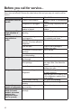 Before you call for service... Troubleshooting Tips Save time and money! Review the chart below first and you may not need to call for service. Problem Possible Causes Refrigerator does not Control in OFF position. operate Refrigerator is unplugged. Vibration or rattling (slight vibration is normal) Motor operates for long periods or cycles The fuse is blown/circuit breaker is tripped. Front leveling legs need adjusting. Normal when refrigerator is first plugged in.