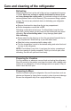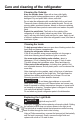 Care and cleaning of the refrigerator Defrosting 'HIURVW ZKHQHYHU IURVW RQ WKH ZDOO RI WKH LFH WUD\ FRPSDUWPHQW EHFRPHV ´WKLFN Never use a sharp or metallic instrument to remove frost as it may damage the cooling coils. (A punctured cooling coil will cause serious problems and void the warranty.