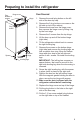 Preparing to install the refrigerator Read these instructions completely and carefully. Refrigerator Location Ŷ 'R QRW LQVWDOO WKH UHIULJHUDWRU ZKHUH WKH WHPSHUDWXUH ZLOO JR EHORZ ) & EHFDXVH it will not run often enough to maintain proper temperatures. Ŷ 'R QRW LQVWDOO WKH UHIULJHUDWRU ZKHUH WKH WHPSHUDWXUH ZLOO JR DERYH ) & EHFDXVH it will not perform properly.