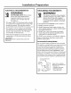 Installation Preparation ELECTRICAL REQUIREMENTS GROUNDING WARNING! The improper connection of the equipment WARNING! grounding conductor can result in a risk of FOR PERSONAL SAFETY: Remove house fuse or open circuit breaker before beginning installation. Do not use an extension cord or adapter plug with this appliance. electric shock. Check with a qualified electrician or service representative if you are in doubtthatthe appliance is properly grounded.