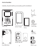 Features Monitor and Sensor Front 1. LCD Screen - 1.5” LTPS LCD 2. Speaker - play back the audio sound of recorded file in PLAY mode 3. SD Card Insert Slot 4. Battery Cover 5. Microphone 6. Motion-activated Sensor – detects motion up to 6.5 feet (2 meters) away and from a horizontal angle of up to 125 degrees (Motion cannot be detected through glass storm doors, screen doors or metal gates). 7. Lens Control Panel 1. OK – confirm setting 2. CURSOR – 3. MENU – enter Menu screen 4.