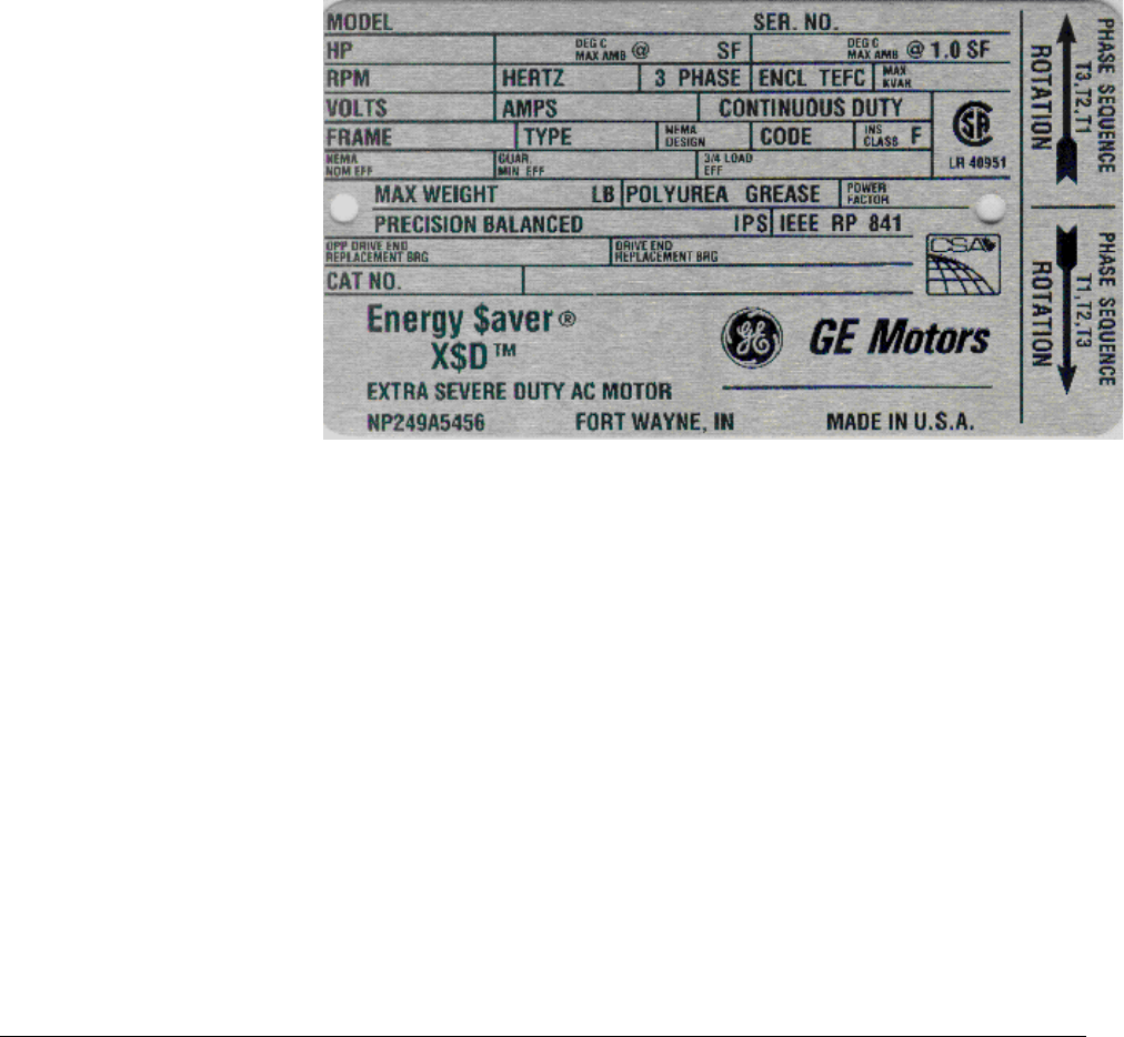 The motor nameplate contains the basic information for the motor. The drive is