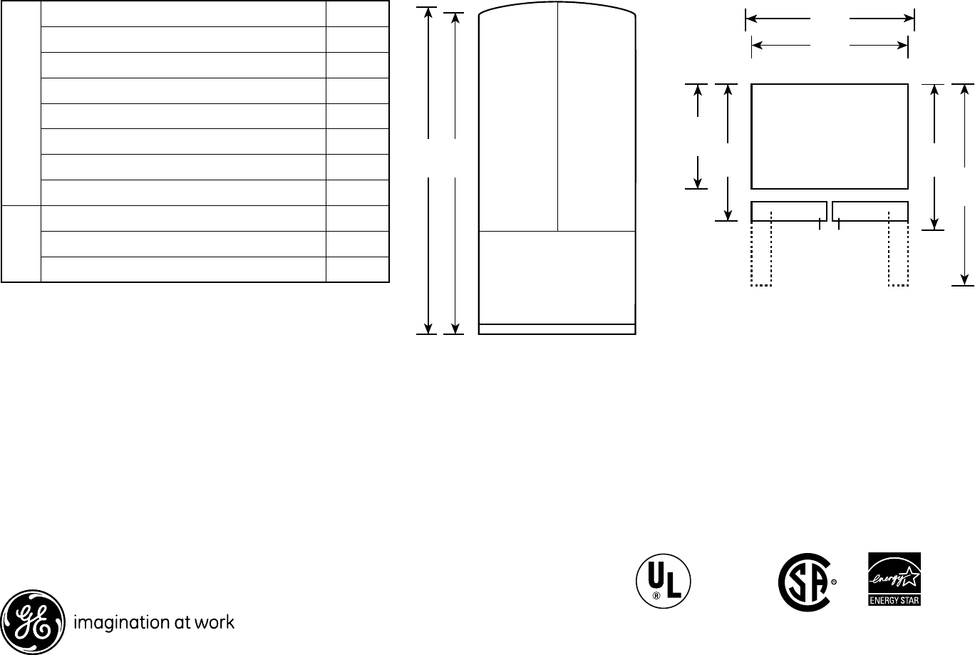 French Door Refrigerator With Icemaker Specification Sheet