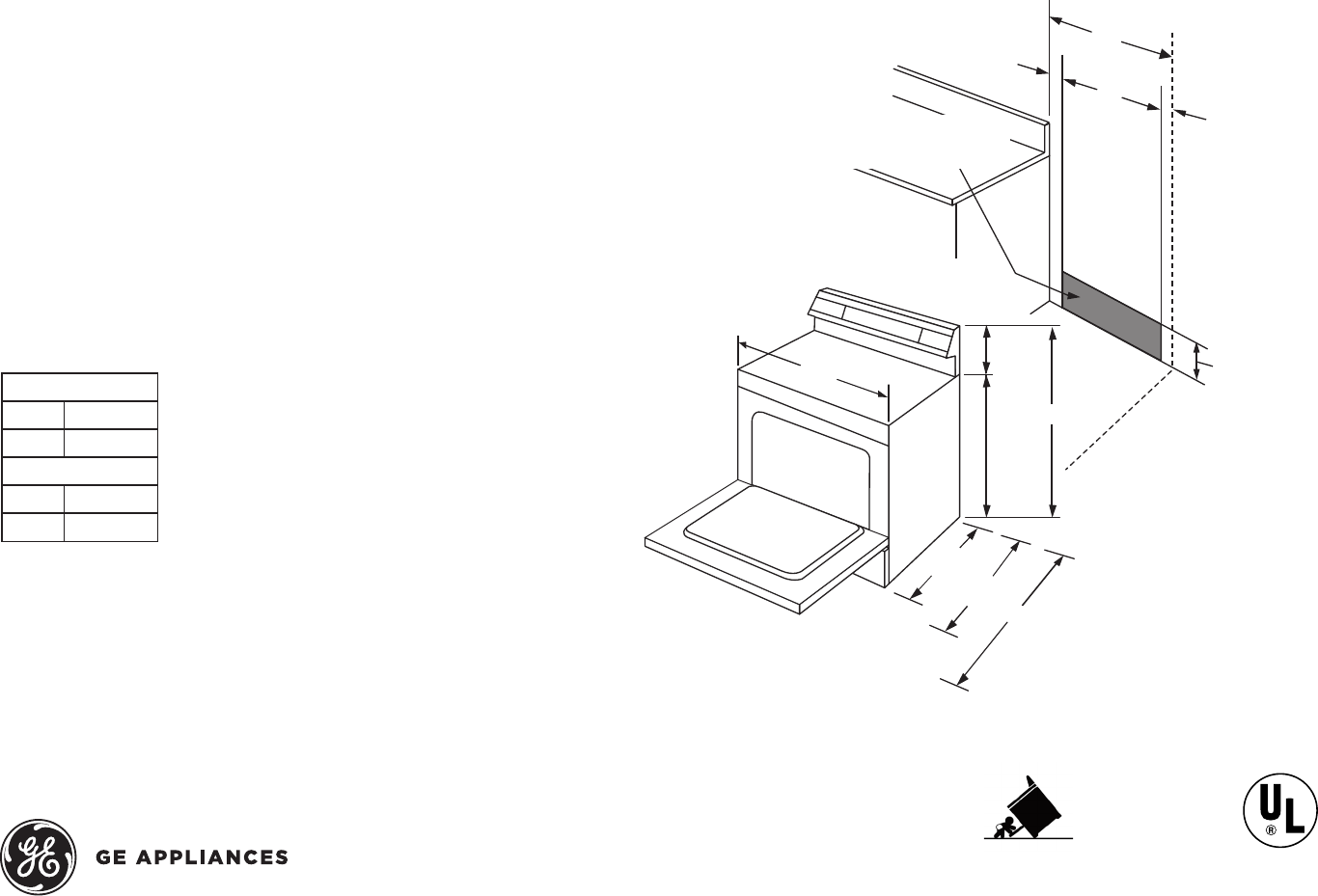 box. Recommended outlet locations allow range to be installed