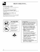 GEAppliances.com Safety Instructions Anti-tip Dmice Operating _ ....... Preparation 2--_ • . .2, ,,, _ ,3"6, 44, 45 Instructions, Tips Almnimun Foil . .5, 15, 22-24, 31 (;lock and Timer . ....... 1O, 11 Features ................ 6, 7 Oven ................. 12-28 Baking .............. Instructions 35-45 ............ E(;R3000 Leveling ................. LP ...................... Troubleshooting 24, 25 E(;R300I 44 45 Consumer Light Bull) Replacement ......... Pre heating ..............