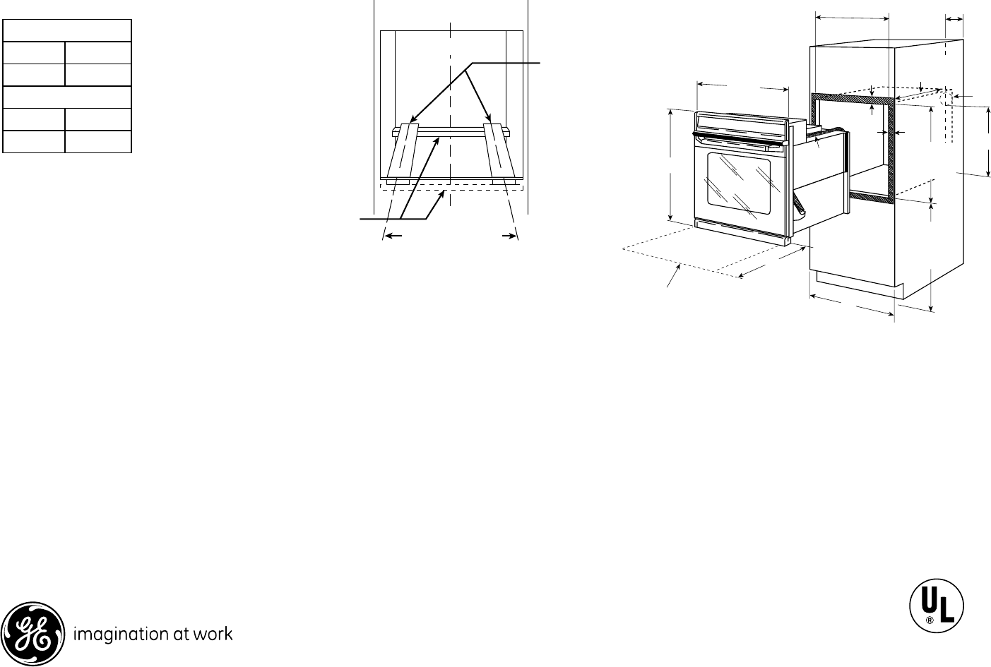 A=Allow 1" overlap of oven over top and bottom edges of cutout.