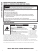 SAFETY INFORMATION IMPORTANT SAFETY INFORMATION READ ALL INSTRUCTIONS BEFORE USING WARNING ,I WKH LQIRUPDWLRQ LQ WKLV PDQXDO LV QRW IROORZHG H[DFWO\ D ILUH RU H[SORVLRQ PD\ UHVXOW FDXVLQJ SURSHUW\ GDPDJH SHUVRQDO LQMXU\ RU GHDWK - Do not store or use gasoline or other flammable vapors and liquids in the vicinity of this or any other appliance.