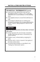 INSTALLATION INSTRUCTIONS TO INSTALL THERMOSTAT IMPORTANT: Thermostat installation must conform to local and national building and electrical codes and ordinances. Note: Mount the thermostat about five feet above the floor. Do not mount the thermostat on an outside wall, in direct sunlight, behind a door or in an area affected by a vent or duct. 1. Turn off power to the heating and cooling system by removing the fuse or switching off the appropriate circuit breaker. 2.