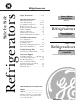 Installation Instructions Refrigerator Models 25 Questions? Call 800-GE-CARES (800.432.2737) or Visit our Website at: www.GEAppliances.com Questions? In Canada, call 1.800.361.3400 or Visit our Website at: www.geappliances.ca BEFORE YOU BEGIN CLEARANCES Read these instructions completely and carefully. Allow the following clearances for ease of installation, proper air circulation and plumbing and electrical connections: • IMPORTANT – Save these instructions for local inspector’s use.