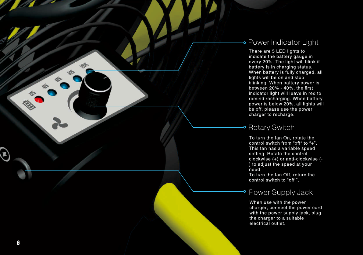 Geek Aire CF1 Outdoor Rechargeable Variable Speed Floor Fan w/ Power Bank Feature (12")