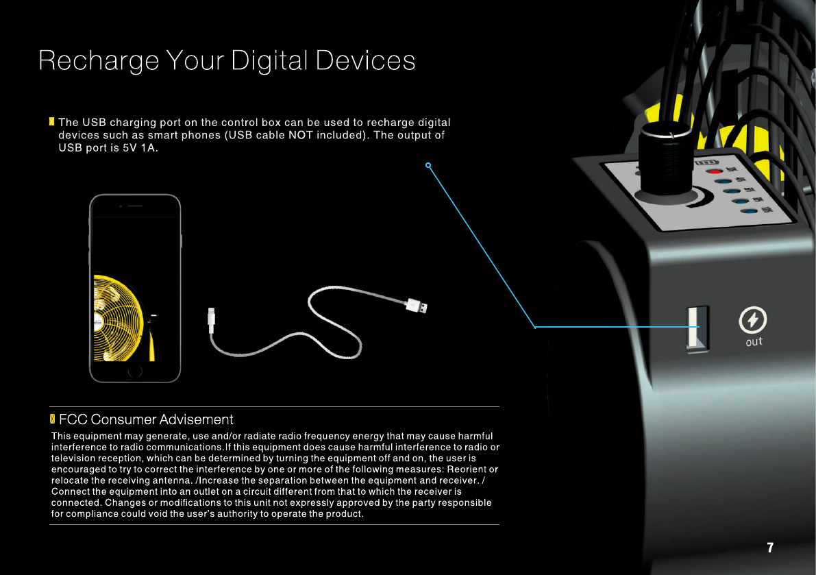 Geek Aire CF1 Outdoor Rechargeable Variable Speed Floor Fan w/ Power Bank Feature (12")