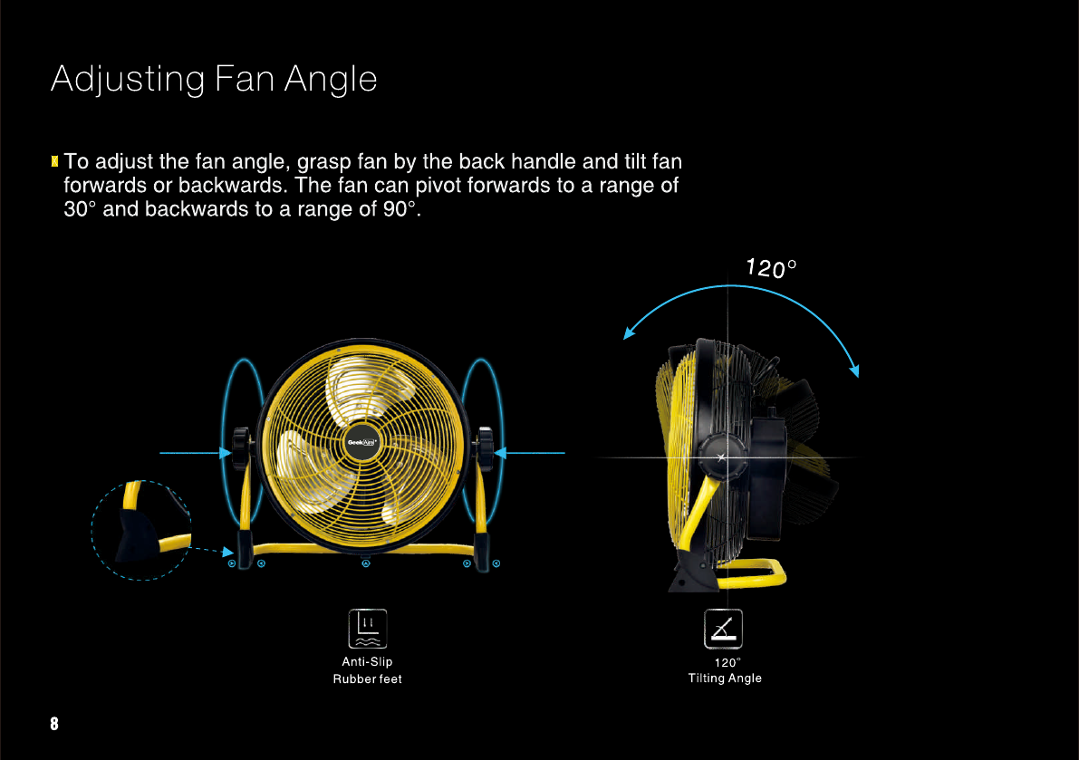 Geek Aire CF1 Outdoor Rechargeable Variable Speed Floor Fan w/ Power Bank Feature (12")